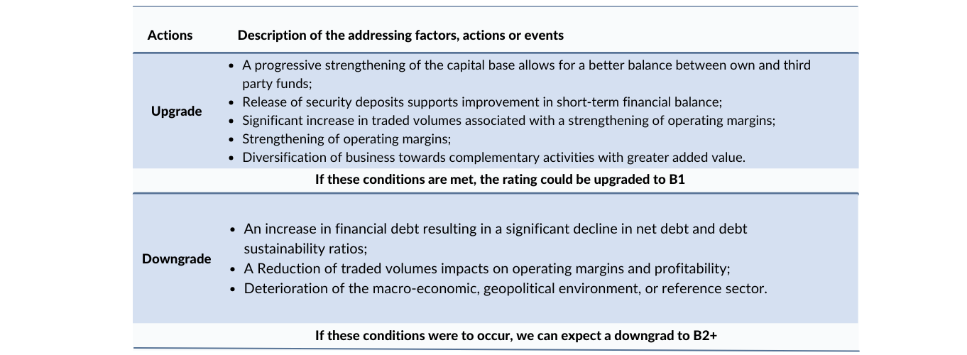 The present Corporate Credit rating is issued by modefinance under EU Regulation 1060/2009 and following amendments.