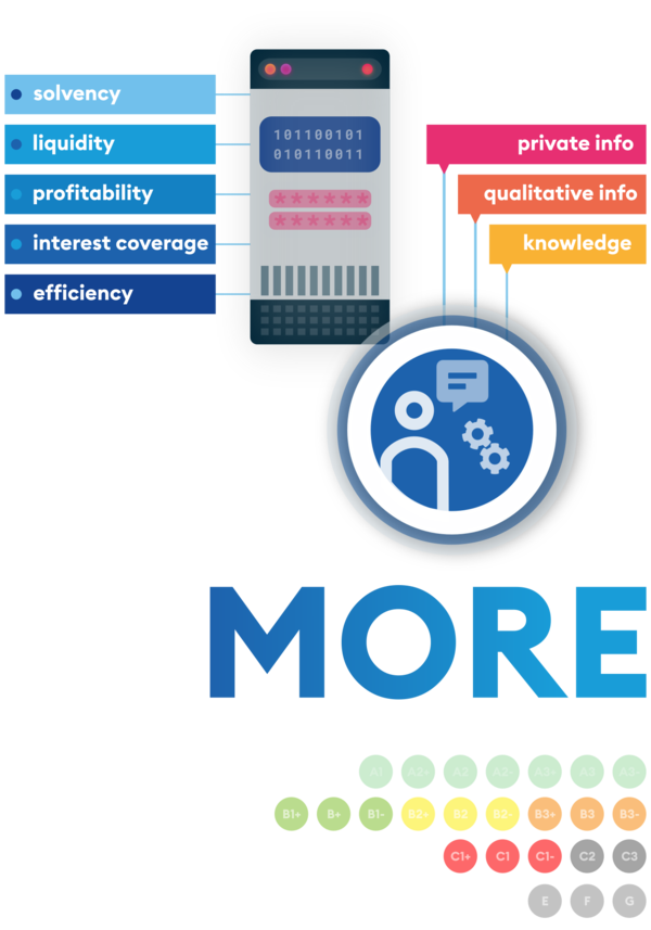 Our Credit Ratings are processed with MORE, a proprietary AI-based methodology, core of all our rating activities, supervised and tested on a regular base.
