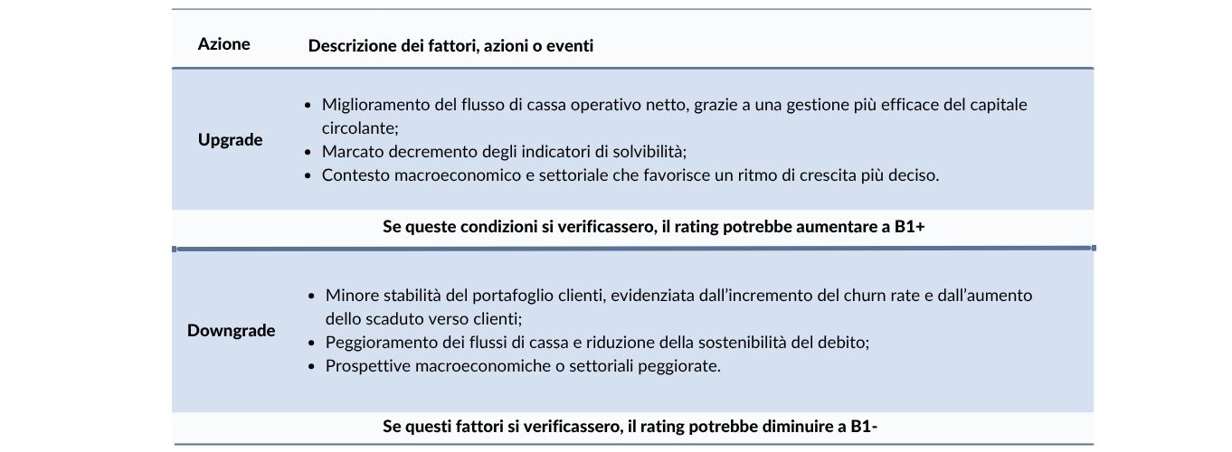 Nella tabella seguente vengono riportati i fattori, le azioni o gli eventi che potrebbero portare il giudizio di rating ad un upgrade o ad un downgrade: