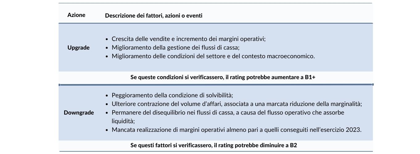 Nella tabella seguente vengono riportati i fattori, le azioni o gli eventi che potrebbero portare il giudizio di rating ad un upgrade o ad un downgrade:
